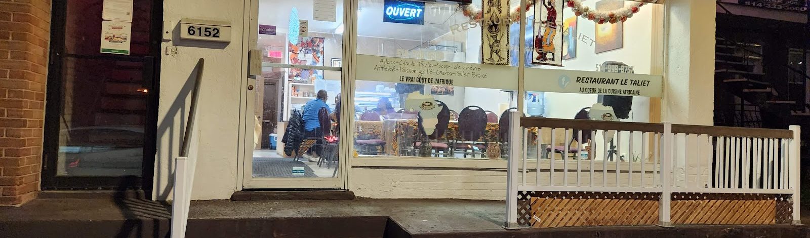 Restaurant Le Taliet Inc. - 6152 Boul Gouin O, Montréal, QC H4J 1E9, Canada - Itinéraire View photos À retenir Information Restaurant Le Taliet Inc. est un restaurant africain situé dans le quartier Ahuntsic à Montréal. Noté 4.3/5 par 128 clients sur Google Maps. Ouvert du lundi au samedi de 12h à 19h. Show more Show less Comment se rendre à Restaurant Le Taliet Inc. Address 6152 Boul Gouin O, Montréal, QC H4J 1E9, Canada Itinéraire Facebook Twitter Pinterest Liste similaires Restaurant Afro-Fusion African Restaurant Fresh Kitchen MTL 7056 Rue Allard, LaSalle, QC H8N 0E1, Canada Actuellement : Fermé Restaurant Afro-Fusion Kane Grillade 1505 Av Dollard, Montréal, QC H8N 1T3, Canada Actuellement : Fermé Restaurant Afro-Fusion The Rich Aunty’s Cuisine 695 Blvd. Marcel-Laurin, Saint-Laurent, QC H4M 2M2, Canada Actuellement : Fermé Restaurant Afro-Fusion Les Ambassades – Resto Bar Lounge Cote-Vertu 742 Bd Décarie, Saint-Laurent, QC H4L 3L5, Canada Actuellement : Fermé